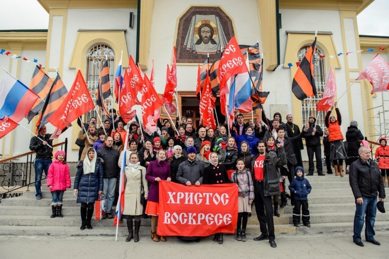 Все автомобили были украшены яркими пасхальными наклейками с приветствиями «Христос Воскресе!», на машинах также красовались красные пасхальные и георгиевские флаги, а также флаги Российской Федерации.