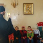 Он рассказал детям об устройстве храма и о празднике Пасхе. В завершении встречи иеромонах Мелхиседек благословил детей.