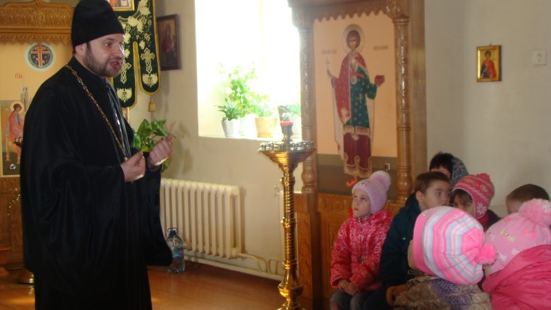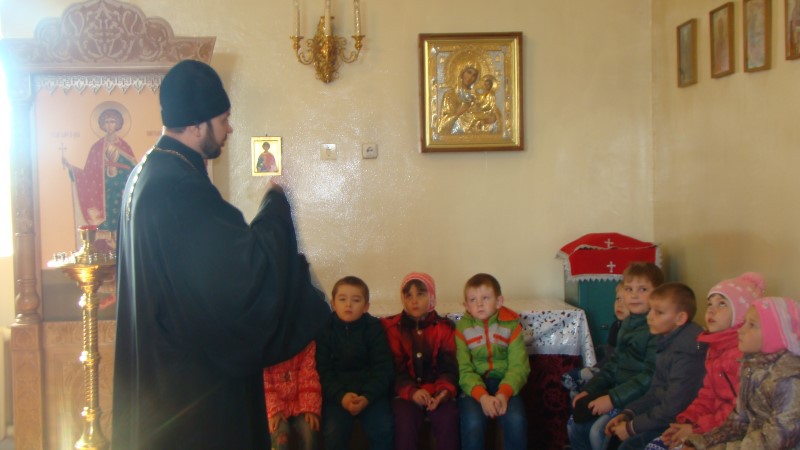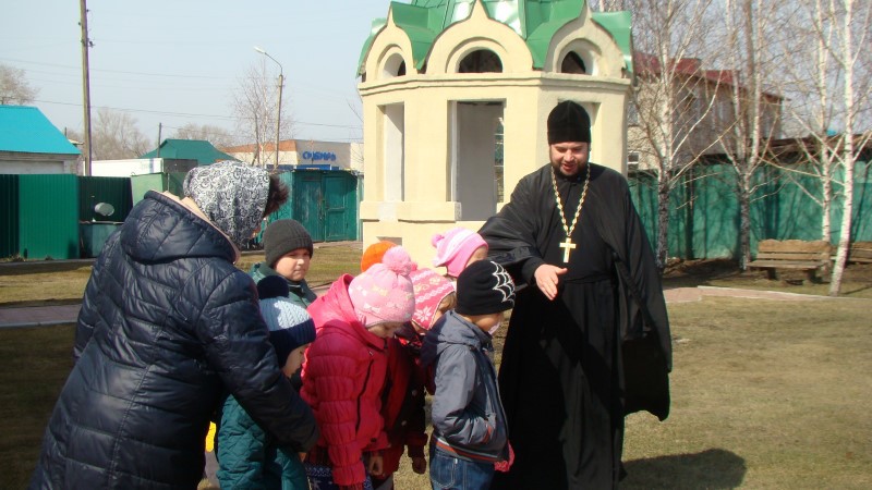 17 апреля/пятница. В храме во имя святого апостола и евангелиста Луки города Купино иеромонах Мелхиседек (Свистелин), благочинный Центрального округа Карасукской епархии, провел экскурсию с воспитанниками детского сада села Новониколаевки Купинского района.