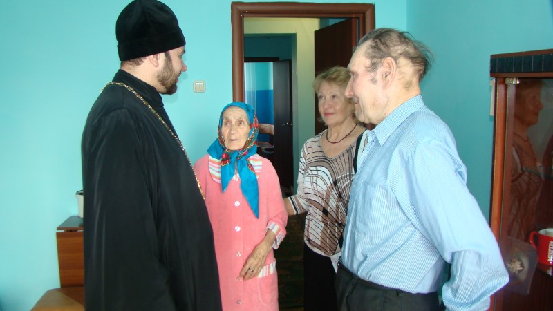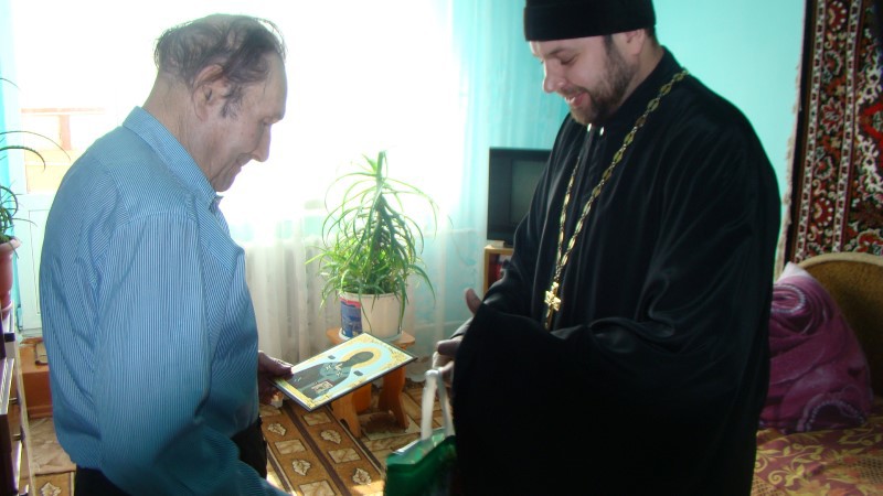 Иеромонах Мелхиседек поблагодарил Павла Леонтьевича за Победу, пожелал ему и его супруге долголетия и в благословение преподнес икону святителя Николая, архиепископа Мир Ликийских, чудотворца.