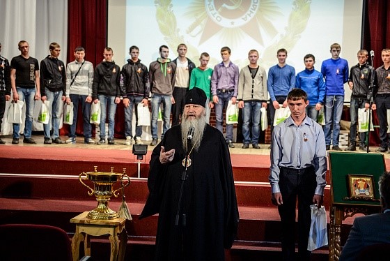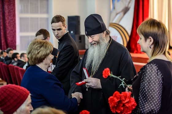 После церемонии возложения цветов к мемориалу славы Митрополит Тихон и глава администрации Каргатского района Валерий Александрович Флек приняли участие во встрече с ветеранами и призывниками. Владыка обратился со словами благодарности к ветеранам войны и труда, труженикам тыла. Он вручил ветеранам, представителям местной власти и меценатам памятные юбилейные медали, посвященные 1000-летию преставления святого равноапостольного князя Владимира. Митрополит Тихон также поздравил призывником с началом нового пути и благословил их на военную службу.
