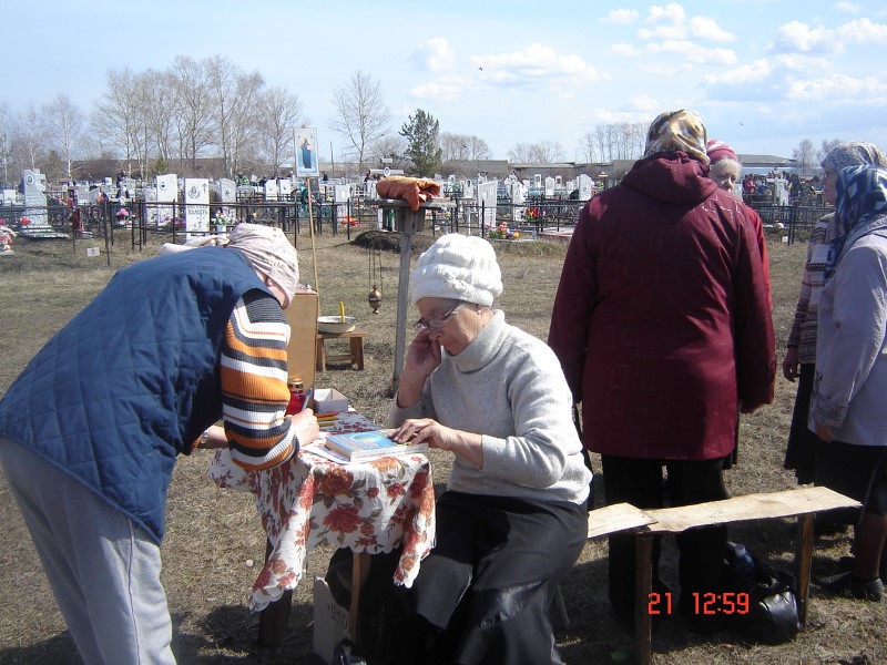 Первый раз за 10 лет было необычайно тепло. Подавали много записок. За 10 лет люди уже привыкли, что записку на кладбище в любую погоду можно подать и свечку за усопших можно поставить.