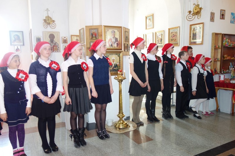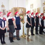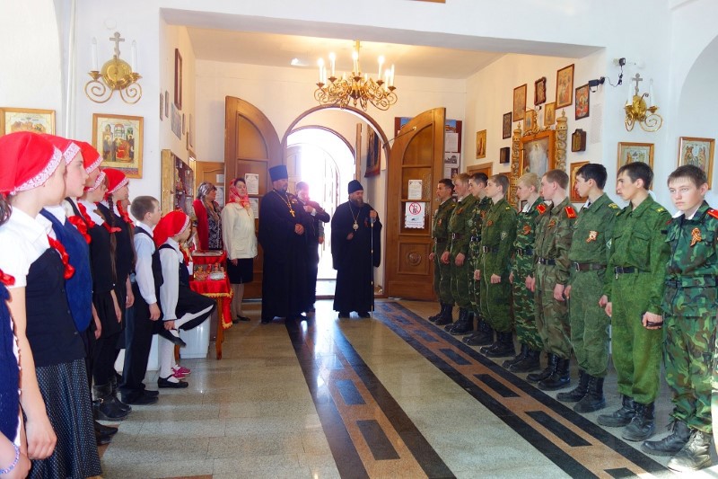 В храме в честь Успения Пресвятой Богородицы дети воскресной школы встретили Владыку и показали Пасхальный концерт.