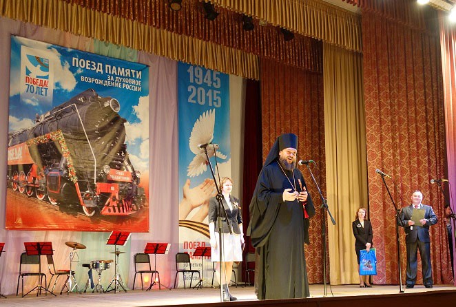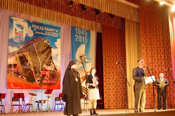 Перед началом концерта со словами поздравления к участникам Поезда Памяти обратились заместитель главы администрации Бурдин Роман Валерьевич, епископ Филипп и представители Правительства Новосибирской области и Западно-Сибирской железной дороги.