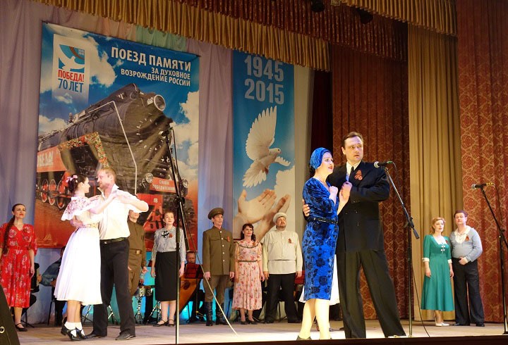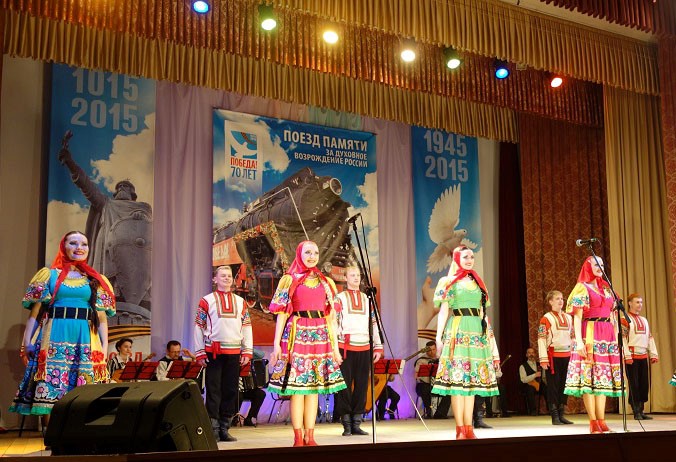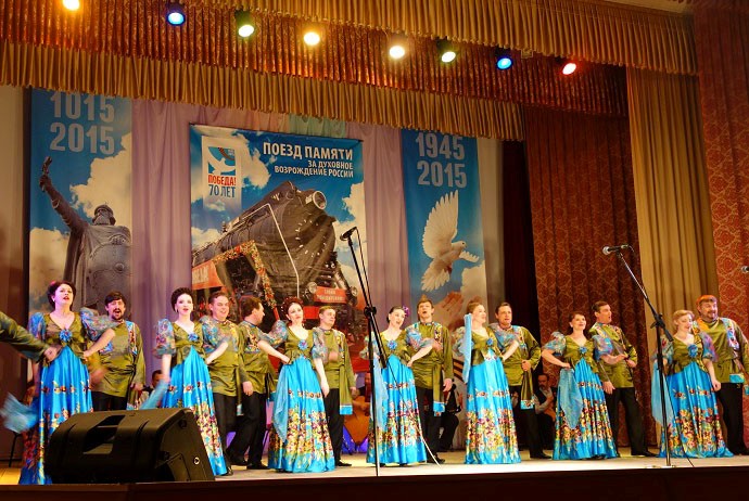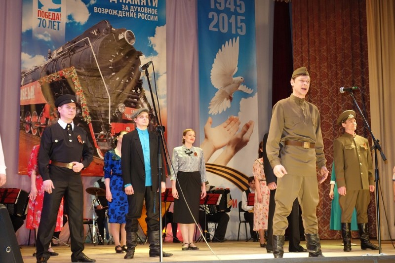 На празднике выступил всемирно известный Академический Государственный Сибирский русский народный хор, который является одним из первых профессиональных коллективов традиционной культуры, образованных в России. Особое место в его репертуаре занимает тема Великой Отечественной войны, и это не случайно, ведь этот хор — ровесник Великой Победы и 19 апреля этого года уже отметил свой 70-летний юбилей.
