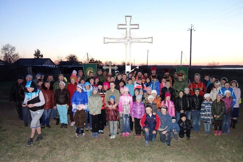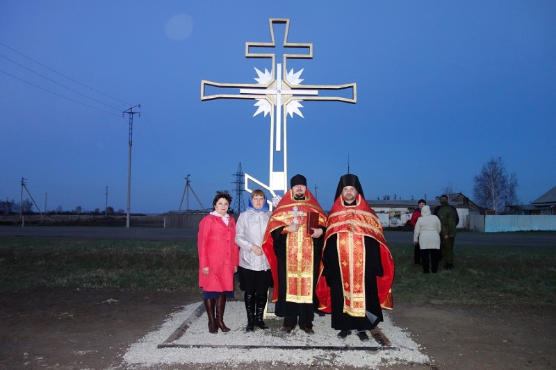 По благословению епископа Филиппа благочинный Центрального округа иеромонах Мелхиседек (Свистелин) со священнослужителями епархии: иереем Илией Березовским, иереем Димитрием Мжельским и иереем Романом Венцаком отслужил молебен и совершил чин водружения креста. На общественной молитве при водружения креста присутствовали жители села и пограничники. С приветственным словом к участникам крестного хода обратились председатель Совета депутатов Купинского района Сорокина Наталья Владимировна, которая специально приехала сюда из г. Купино, отстоящего на расстоянии 60-ти км от села Благовещенки, и Быкова Наталья Владимировна, глава Благовещенского сельсовета,