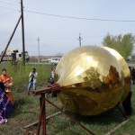 В течение нескольких лет строилась эта часовня и по милости Божией работа подходит к завершению. В связи со знаменательной датой — 70-летием Великой Победы купол с крестом были освящены и подняты на часовню.