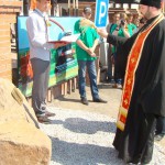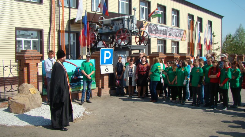 На торжественном мероприятии иеромонах Мелхиседек совершил освящение камня, установленного в память преподавателей лицея, участвовавших в Великой Отечественной войне, и обратился к собравшимся с напутственным словом.
