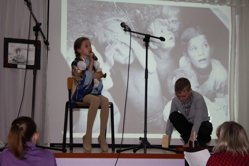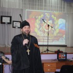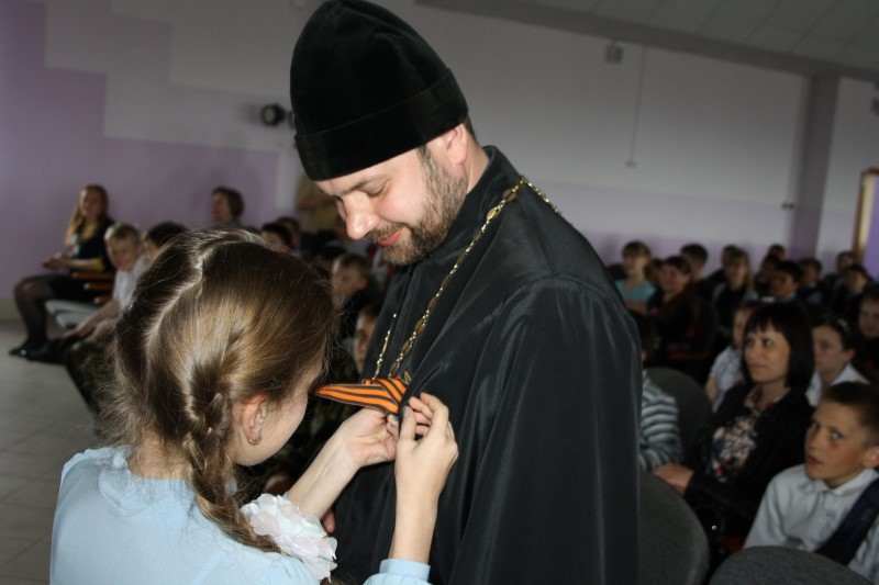 В школе было представлено театрализованное мероприятие, посвященное 70-летию Победы в Великой Отечественной войне. Иеромонах Мелхиседек поздравил учащих и учащихся школы с Днем Великой Победы и обратился ко всем собравшимся с напутственным словом.