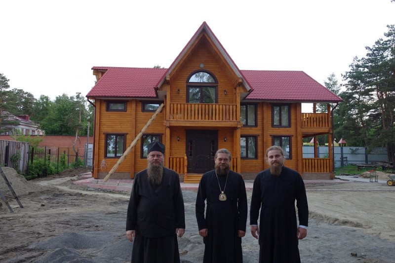 Затем Владыки посетили духовно-просветительский центр, в котором на данный момент строительство уже завершено, и также ведется благоустройство территории.