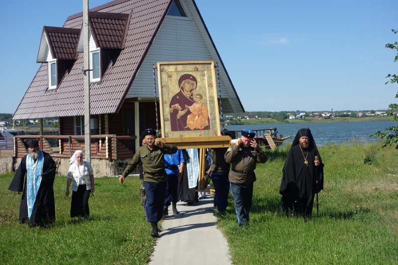 Здесь же, на причале, отслужили молебен перед иконой Иверской Божией Матери, затем крестным ходом икона была перенесена в храм в честь Святой Троицы р. п. Ордынского, где был совершен молебен с акафистом перед ее Пречистым образом.