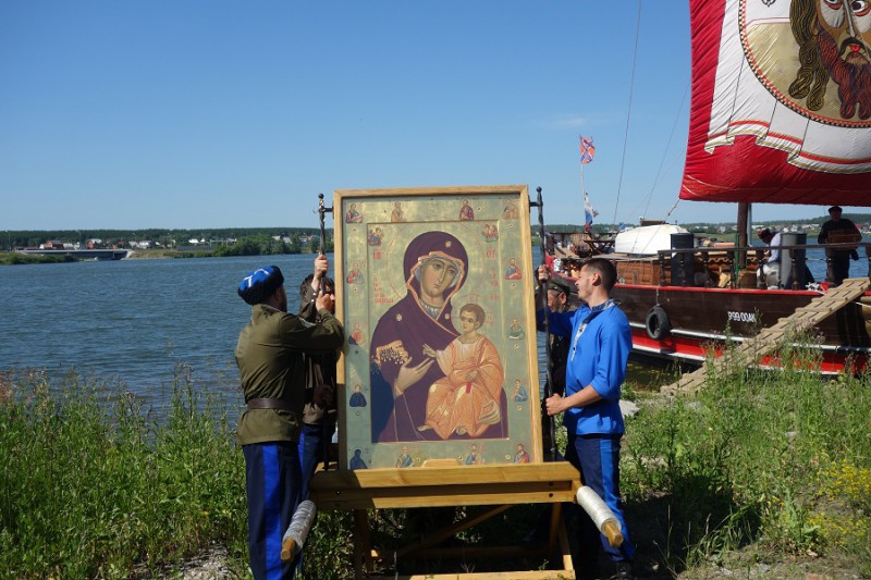 Как рассказал епископ Филипп, «все утро было пасмурным, дул сильный ветер, на Обском море был шторм, и совсем не было видно солнца. Но, когда икону поставили на паром, то ветер тут же утих, море стало спокойным, облака разошлись, и снова засияло солнце! Какое же это было удивление для всех!»