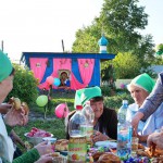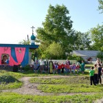 Затем все фотографировались на добрую память у поклонного креста с батюшкой. А потом ребятня побежала к Дому культуры, где праздник Троицы продолжился народным гулянием. А взрослые прихожане накрыли праздничный стол и отметили радость вкусным угощением. За столом люди поговорили и поохали о своем житье-бытье, о Боге и своем приходике.