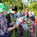 После молебна маленькие, празднично разодетые школьники поздравили стихами и песенками всех присутствующих, а взрослые рассказали о значении Святой Троицы. Потом все вместе водили веселый хоровод. После чего священник торжественно наградил ребятишек и преподавателей местной школы почетными грамотами, молитвословами и сладкими подарками за все добрые христианские дела, в которых они принимали участие: детские выставки и концерты, посвященные Святой Матери Церкви.