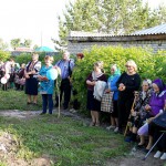 Открылся праздник торжественным молебном, который служил настоятель храма священник Алексей Лебедев вместе с клиросными певцами, которым подпевал весь народ — это было замечательно. Люди сошлись у часовенки и у поклонного креста, на месте строительства будущего храма. Домик часовни был красиво украшен, большие иконы Богородицы и Святой Троицы были выставлены перед людьми.