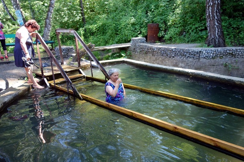 Вначале у источника состоялся молебен. После чего дети православного лагеря смогли окунуться в купальне святого источника.