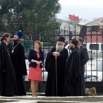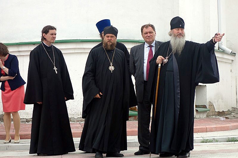 Митрополита Тихона вместе с епископом Филиппом встретил настоятель храма иерей Константин Карамышев. Епископ Филипп показал Владыке Троицкий храм, а также как ведутся работы по благоустройству территории вокруг храма и его ограждению.