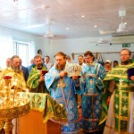 Владыка поздравил настоятеля храма протоиерея Алексея и его прихожан с престольным праздником и отметил, что этот приход в Краснозерском районе один из самых многочисленных и что в Краснозерском районе открыто большое количество сельских храмов. На его территории также находятся два храма, которые являются памятниками архитектуры, — это храм в честь Святой Троицы в с. Мохнатом Логе и храм свв. первоверховных апостолов Петра и Павла.