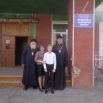 Затем дети вместе с Владыкой помолились, и каждому из них он подарил на память иконку святителя Николая Чудотворца и окропил всех святой водой.
