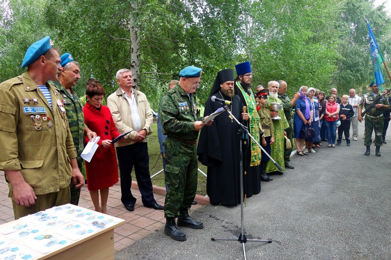 На митинге, посвященном Дню Воздушно-десантных войск, со словами поздравления выступили Его Преосвященство епископ Филипп и глава Доволенского района Сергей Алексеевич Кайгородцев.