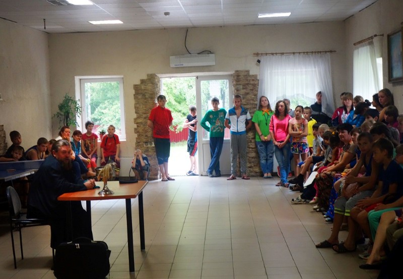 Владыка поприветствовал детей и осмотрел лагерь и его корпуса. После чего состоялась его беседа с детьми. Он рассказал им, как прошел этим летом Православный лагерь во имя Архистратига Михаила, также поделился впечатлениями о праздновании 1000-летия со дня преставления равноапостольного князя Владимира, которое прошло 28 июля в г. Москве, где Владыка сослужил Святейшему Патриарху Кириллу в Храме Христа Спасителя.