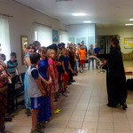 В завершение встречи Владыка окропил всех детей святой водой и раздал им иконки.