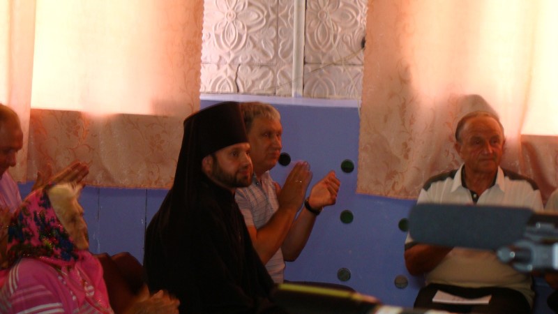 В Доме культуры села прошло праздничное мероприятие, на котором иеромонах Мелхиседек поздравил селян с юбилеем и преподнес в благословение Казанскую икону Пресвятой Богородицы.