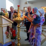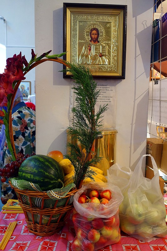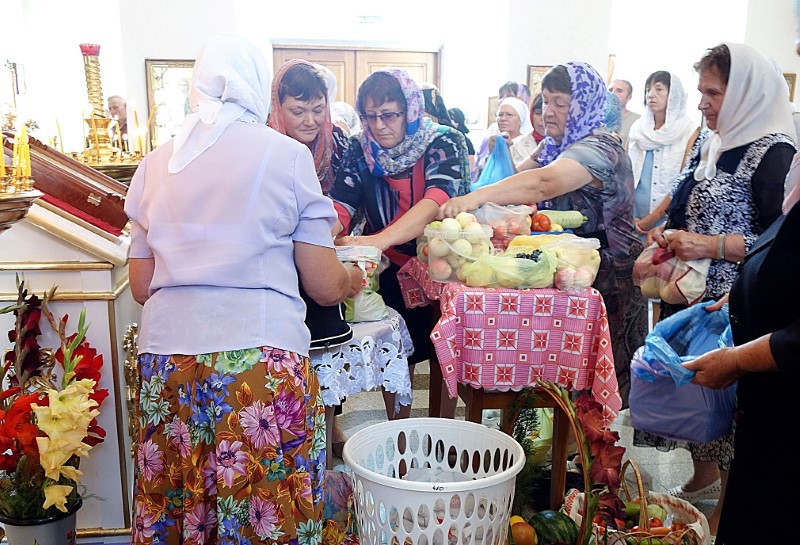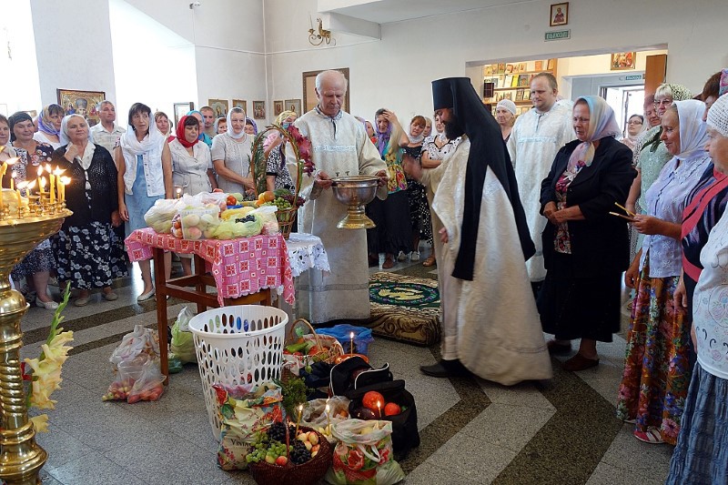 По окончании Литургии был совершен традиционный молебен на освящение яблок, винограда и других плодов нового урожая. После чего Владыка окропил всех прихожан святой водой.