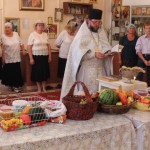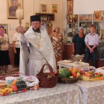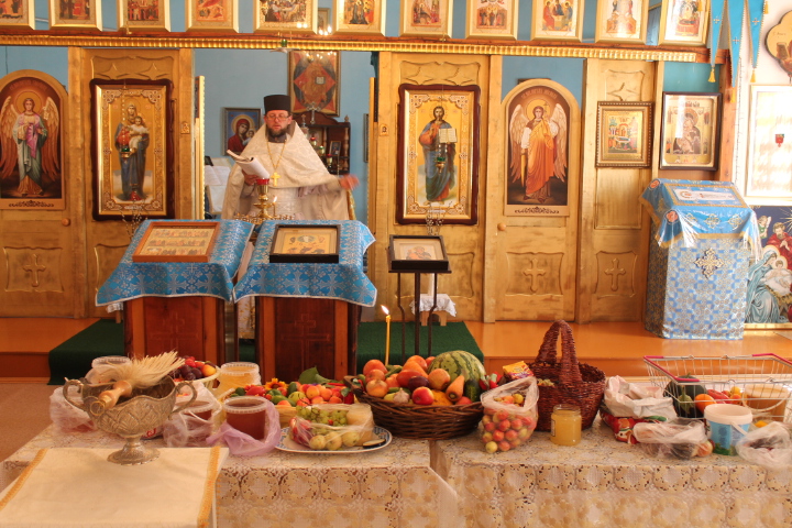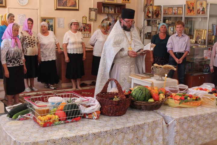 По окончанию Литургии батюшка отслужил молебен на освящение яблок и других плодов нового урожая.