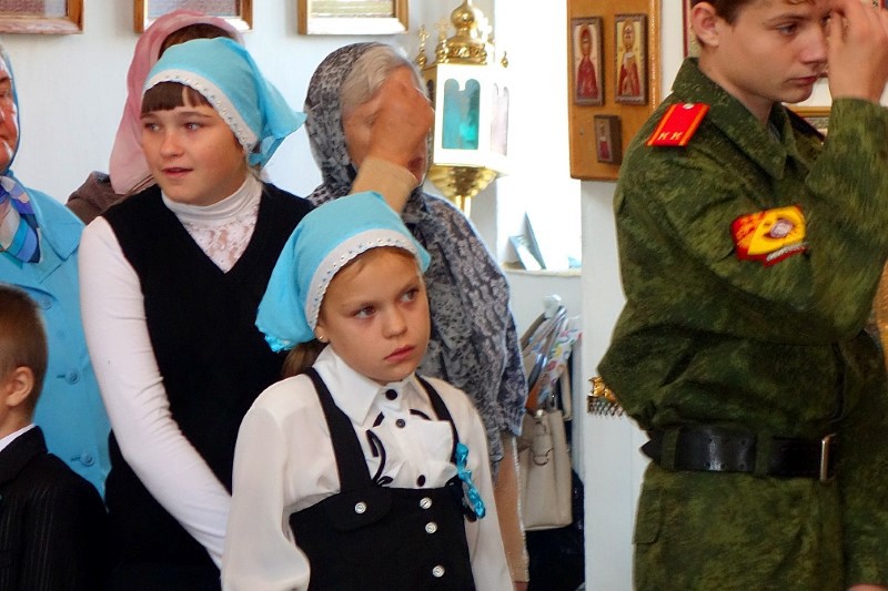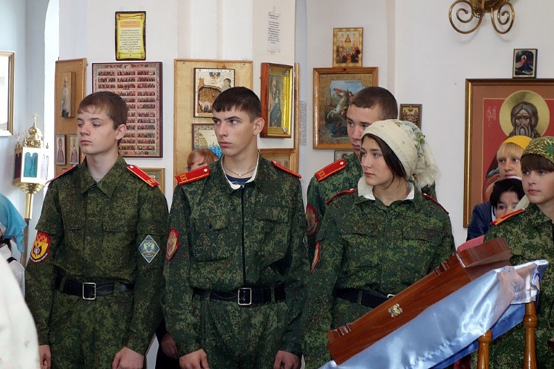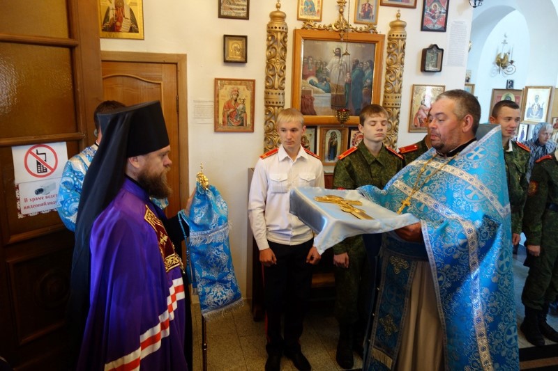 В этот день в храме отмечали престольный праздник. На Литургии присутствовали прихожане, кадеты, казаки, а также дети-сироты из детского дома.