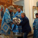 По окончании Литургии Владыка поздравил всех с престольным праздником и напомнил, что Чистоозерный район является особым районом, т. к. здесь проходит государственная граница между Россией и Казахстаном, и ведется духовно-просветительская работа с пограничниками.