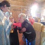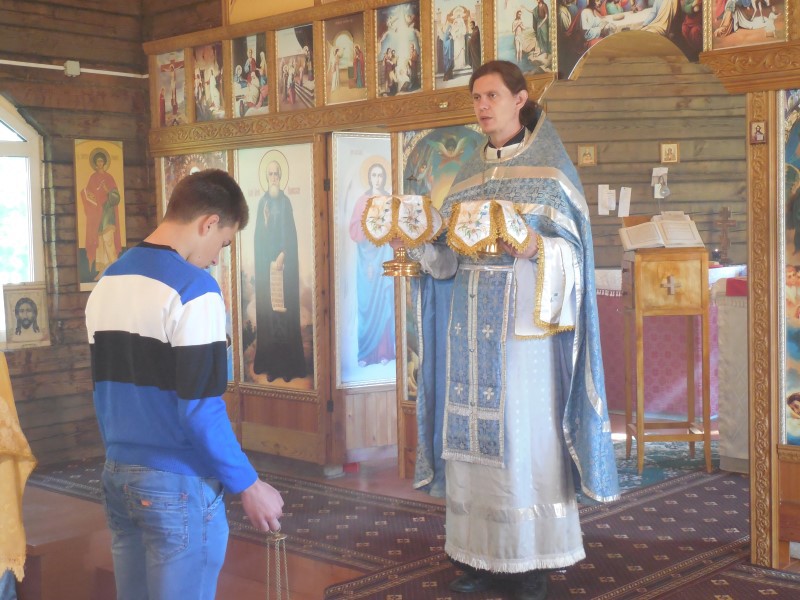 Батюшка поздравил прихожан с праздником Успения Божией Матери, который был накануне, и причастием.