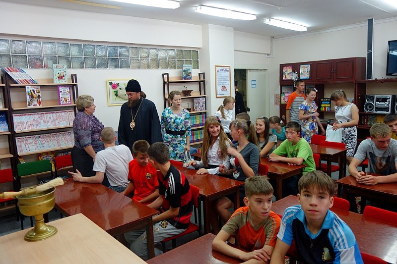 В заключение беседы Владыка, как всегда, прочитал молитвы на начало учения отроков перед иконой Спасителя, после чего окропил всех святой водой и раздал детям сладкие подарки.