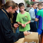 Владыка провел беседу с детьми, раздал им нательные крестики, т. к. они часто теряют их в течение лета и пообещал в конце октября совершить Таинство Крещения над вновь прибывшими некрещенным детьми.