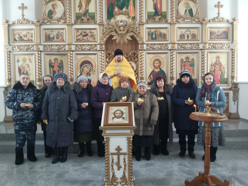 Затем он окропил всех святой водой, раздал иконочки святителя Спиридона Тимифунтского и каждому ребенку вручил сладкий подарок.