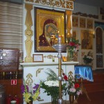 В специально устроенном ящичке хранятся святыни, привезенные прихожанами со святых мест.