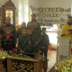 В день отъезда перед началом Божественной литургии в торжественной обстановке состоялось поднятие флага учебной казачьей сотни под пение гимна России.