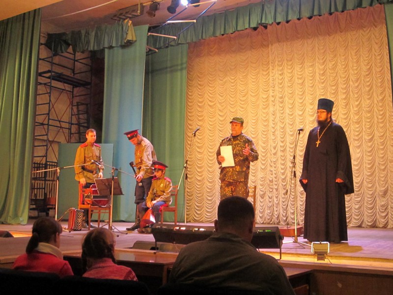 В районном Доме культуры состоялся концерт казачьей песни, а после концерта была организована встреча местных жителей с воинами-добровольцами Донбасса.
