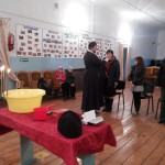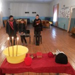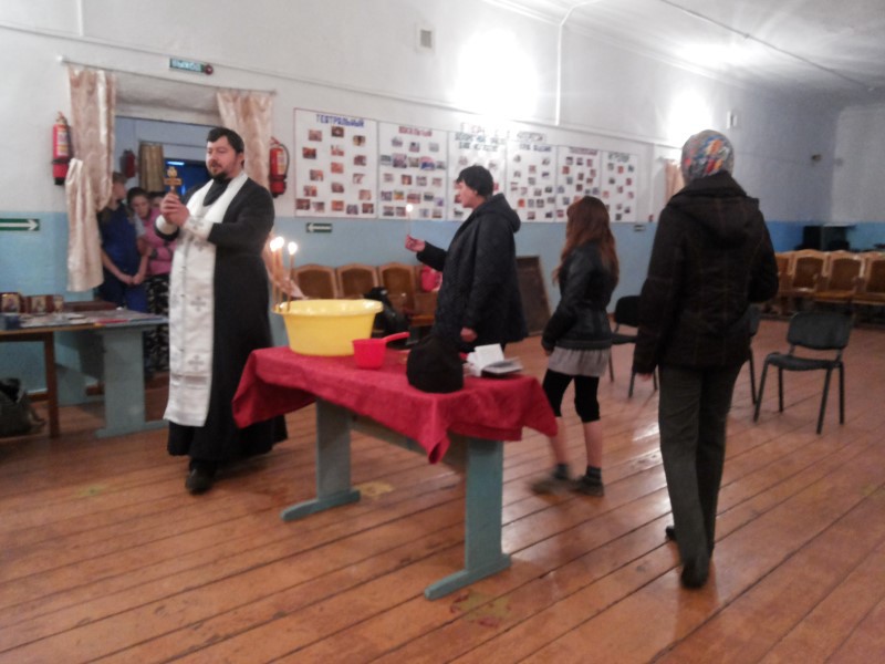 Батюшка освятил дом и пособоровал двух человек, а затем после огласительной беседы покрестил двух человек.