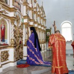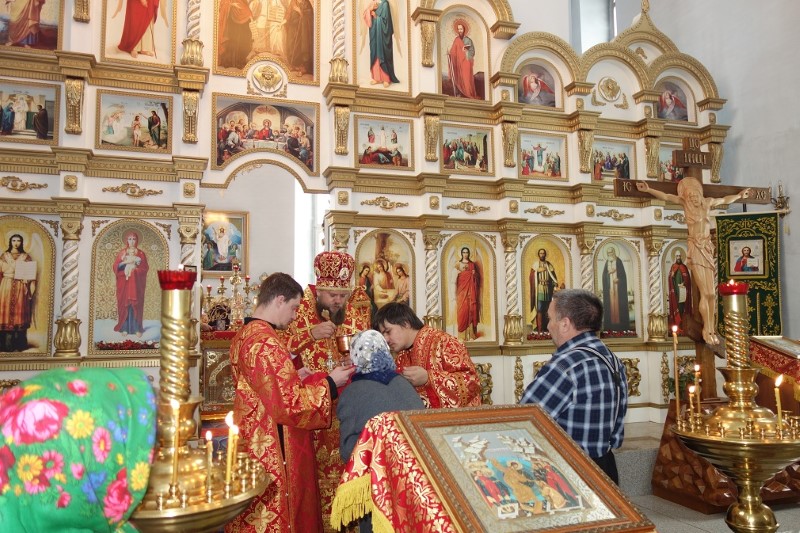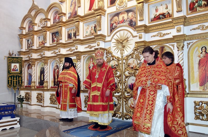 25 октября/воскресение. Его Преосвященство епископ Филипп и Его Преосвященство епископ Николай возглавили Божественную литургию в Троицком кафедральном соборе р. п. Ордынского, им сослужили настоятель собора иерей Константин Карамышев и наместник Свято-Покровского мужского монастыря с. Завьялово игумен Захария (Пономаренко).