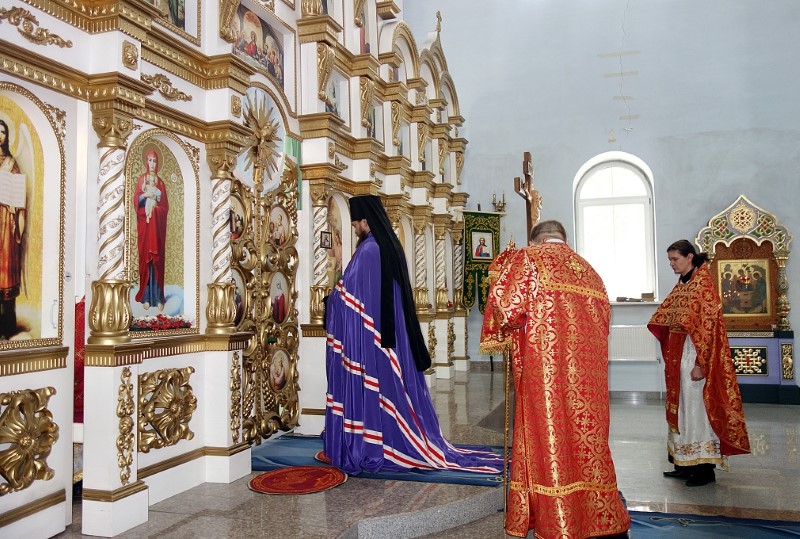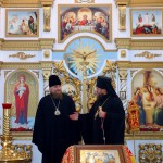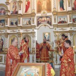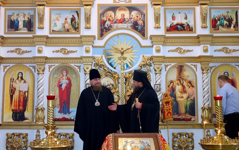 По окончании Литургии епископ Филипп поблагодарил Владыку Николая за посещение Карасукской епархии и напомнил, что завтра, в день памяти Иверской иконы Божией Матери, отмечается и день памяти священномучеников Николая Ермолова и Иннокентия Кикина, пресвитеров Новосибирских.