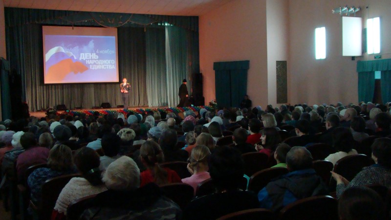 По окончании молебна иеромонах Мелхиседек принял участие в праздничном мероприятии, посвященном Дню народного единства, которое проходило в районном Дворце Культуры города Купино.