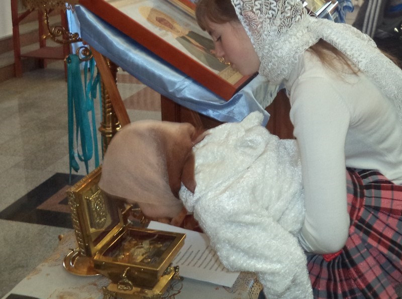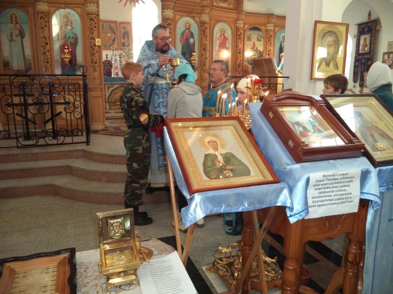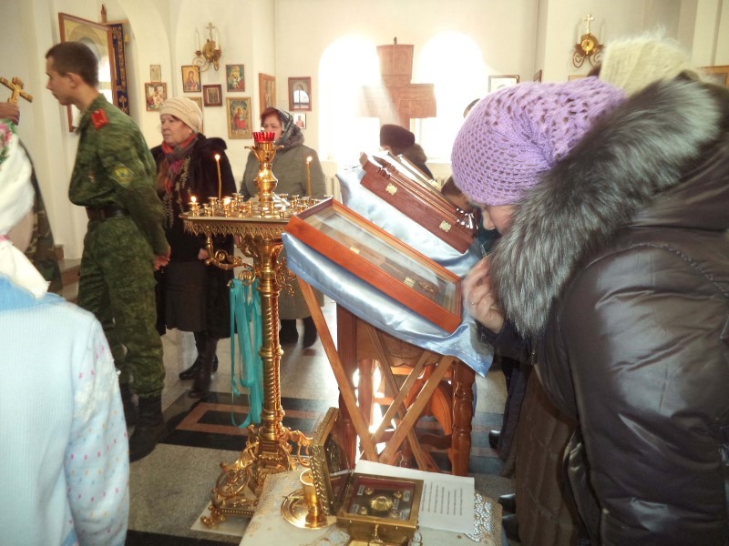 Это святыни — мощевик с частицей древа Креста Господня, ковчег, иконы с мощами свв. Луки Крымского, Матроны Московской, мученика Вонифатия и других угодников Божиих.
