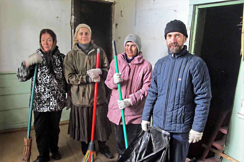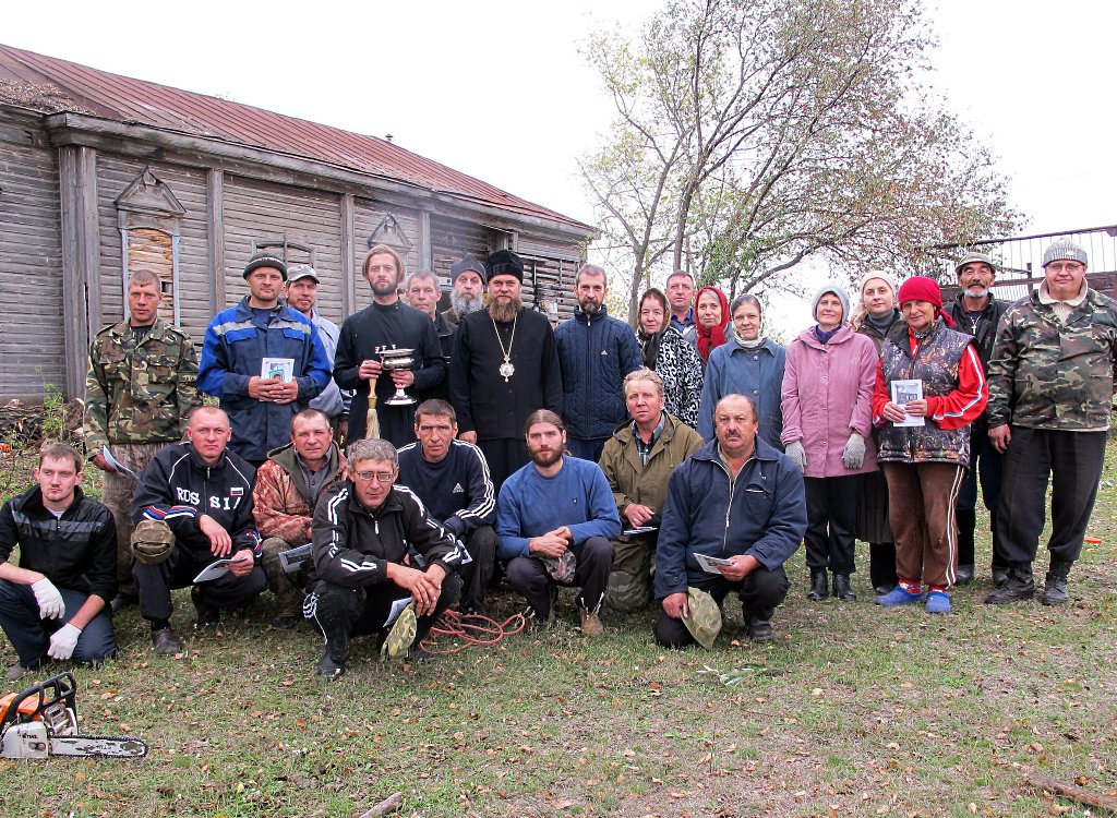 С Владыкой Филиппом прибыл и настоятель храма во имя преп. Сергия Радонежского иерей Алексей Лебедев. После беседы с сельчанами Владыка предложил организовать субботник: очистить здание храма от мусора и ветвей деревьев, навести порядок вокруг здания.