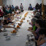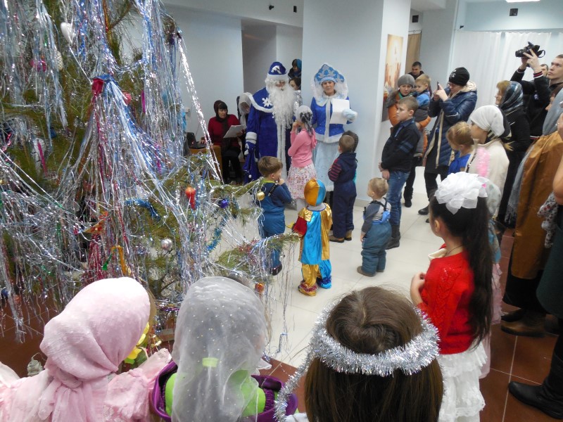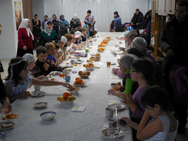 После окончания концерта всем детям роздали рождественские подарки и пригласили на чаепитие.