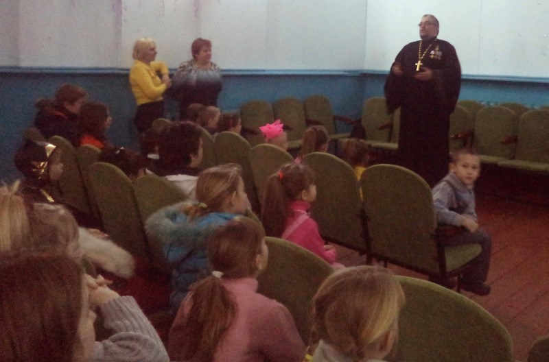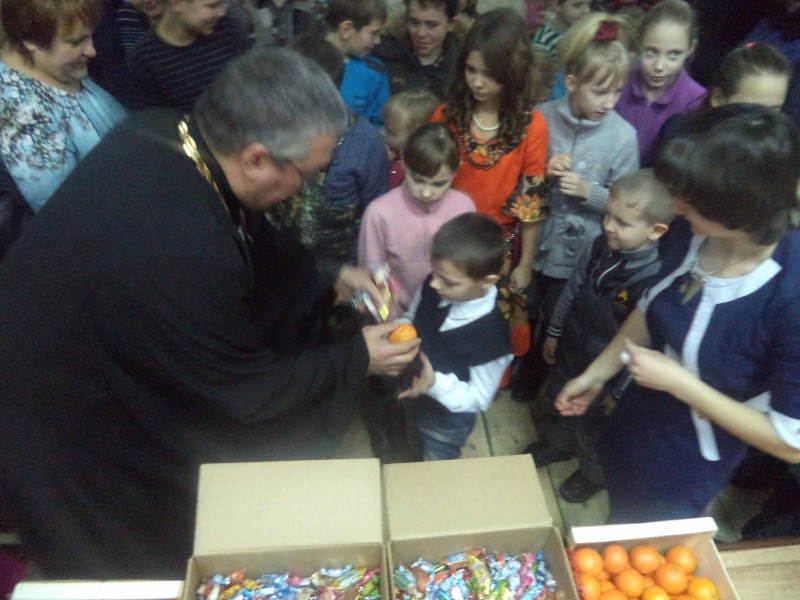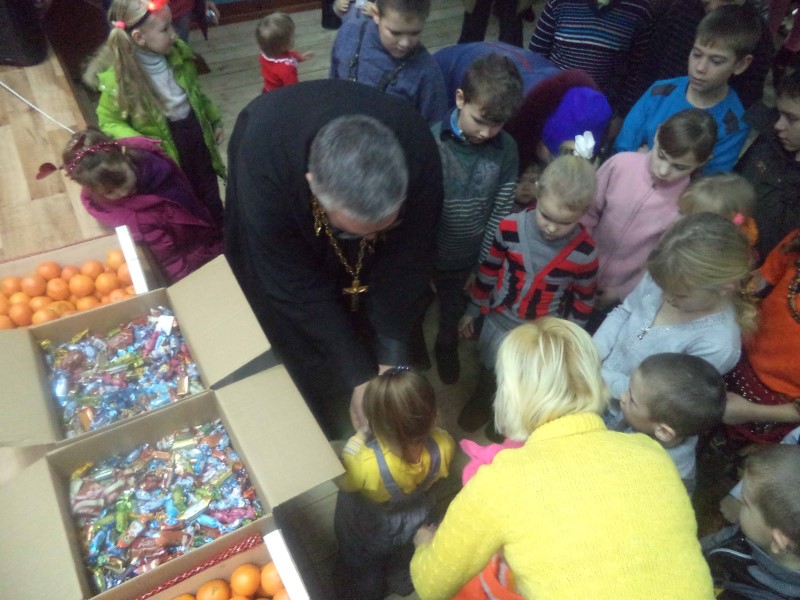 В селе Новопокровском иерей Илья принял участие в детском Рождественском утреннике, рассказал о празднике и раздал детям подарки.
