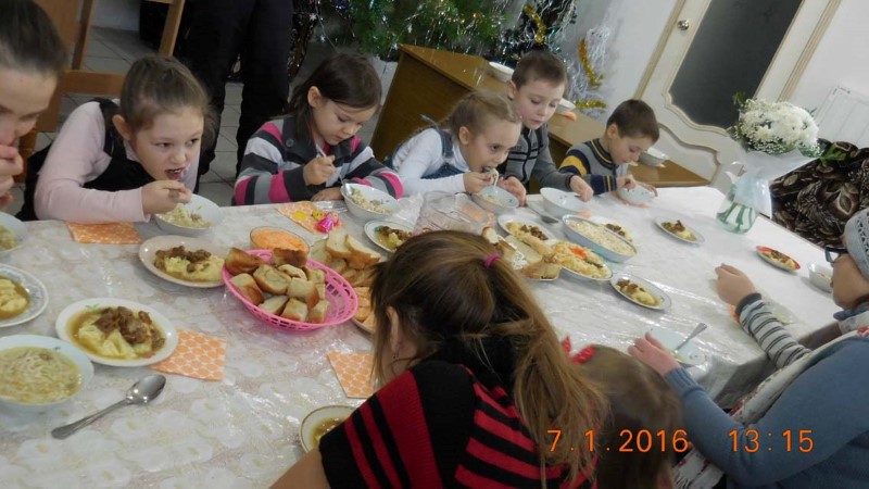 Затем загадывали Рождественские загадки и дети, используя знания, полученные на занятиях в воскресной группе, быстро находили правильные ответы и получили призы. За праздничным столом все отведали вкусное угощенье.