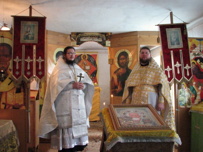 Несмотря на неблагоприятные метеорологические условия и более ста километров бездорожья, отец Роман принял приглашение и прибыл в с. Баклуши с дружеским визитом. Ведь радость молитвенного общения сильнее, чем непогода и гололедица. И вдобавок наши батюшки более двадцати лет знают друг друга — еще со студенческой скамьи Томской Духовной Семинарии. Радость праздника и Евхаристического общения разделили все прихожане, причастившись Святых Христовых Таин.