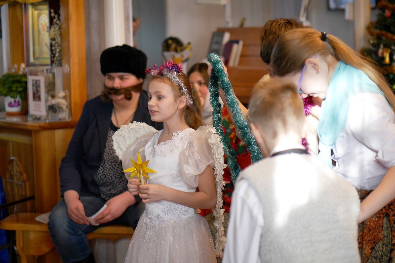 Традиционное действо в этом году было совершенно иным, потому что в нем участвовали дети и взрослые: те самые взрослые юноши и девушки, которые еще несколько лет назад были учениками нашей воскресной школы, но уже выросли и теперь стали студентами ВУЗов и училищ г. Новосибирска.