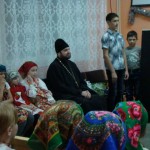 Батюшка рассказал жителям села об истории праздника Рождества Христова, поздравил их со Святками — святыми днями и всех присутствующих на мероприятии благословил.